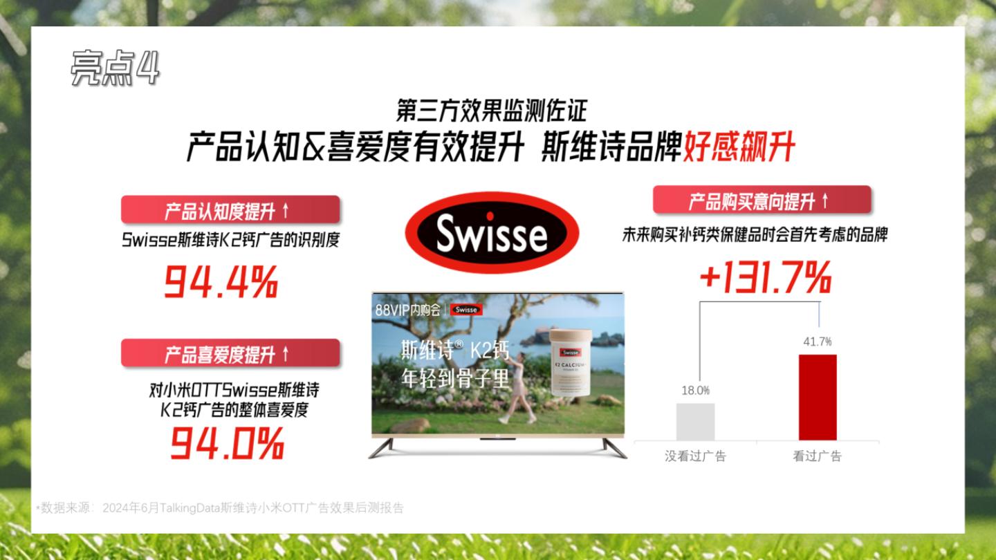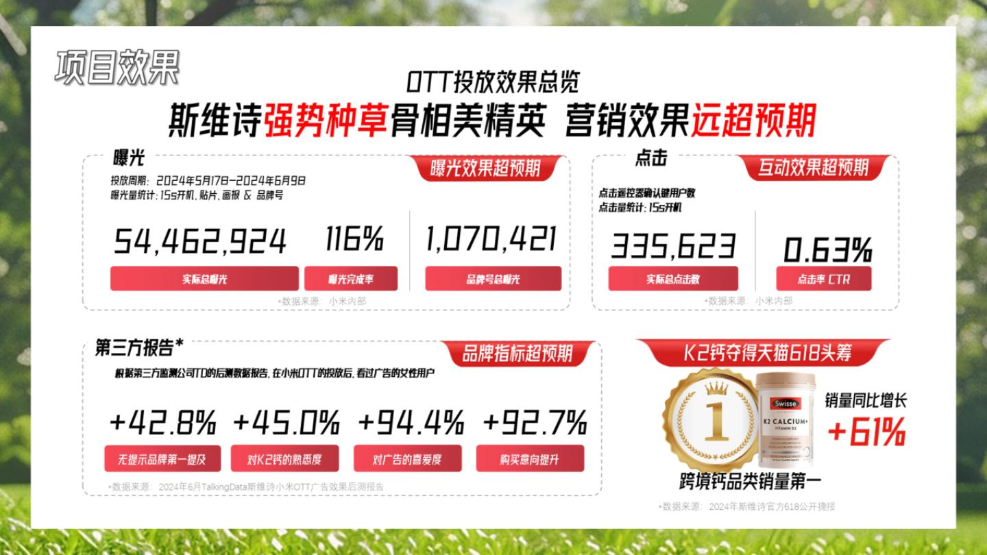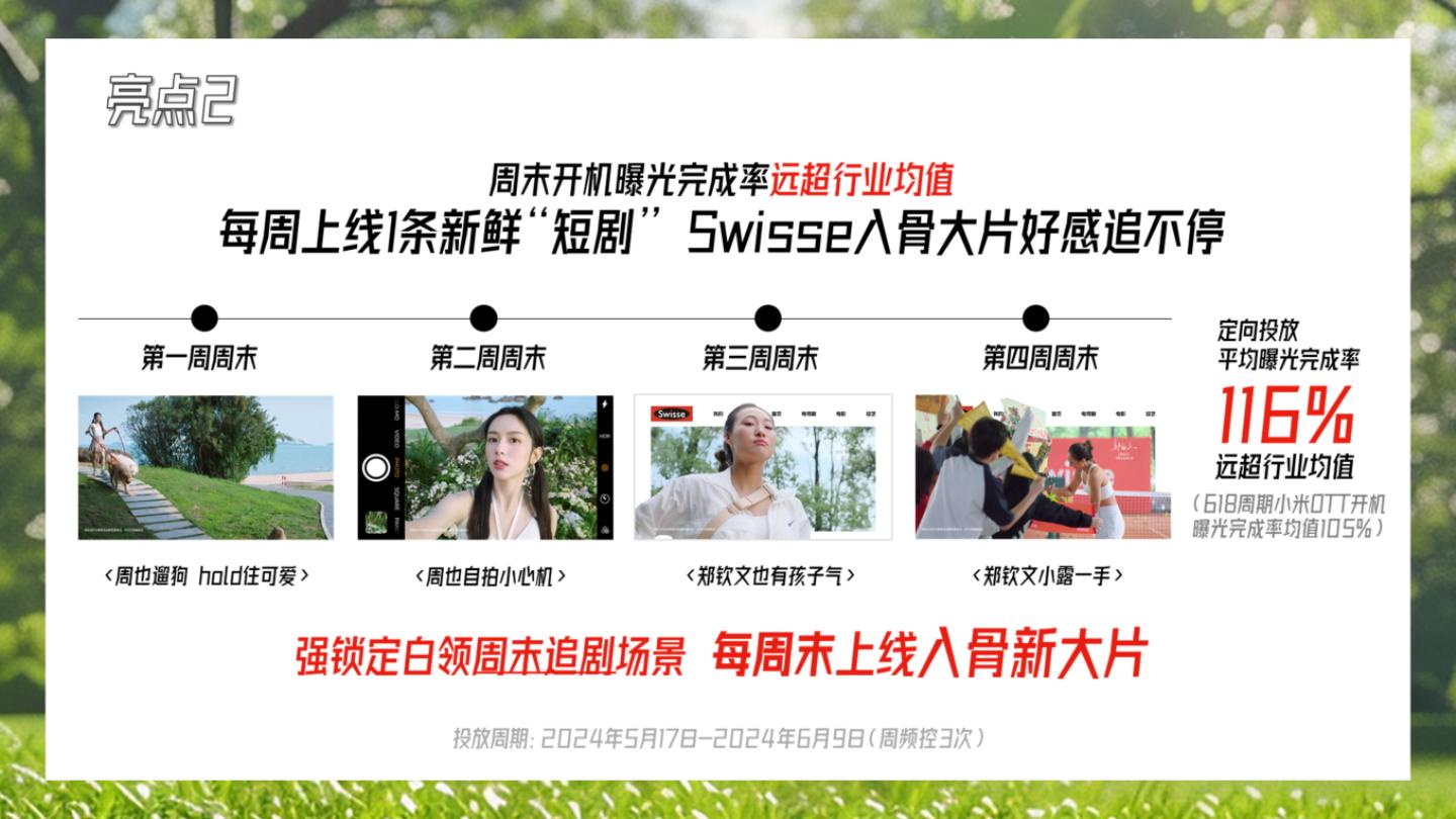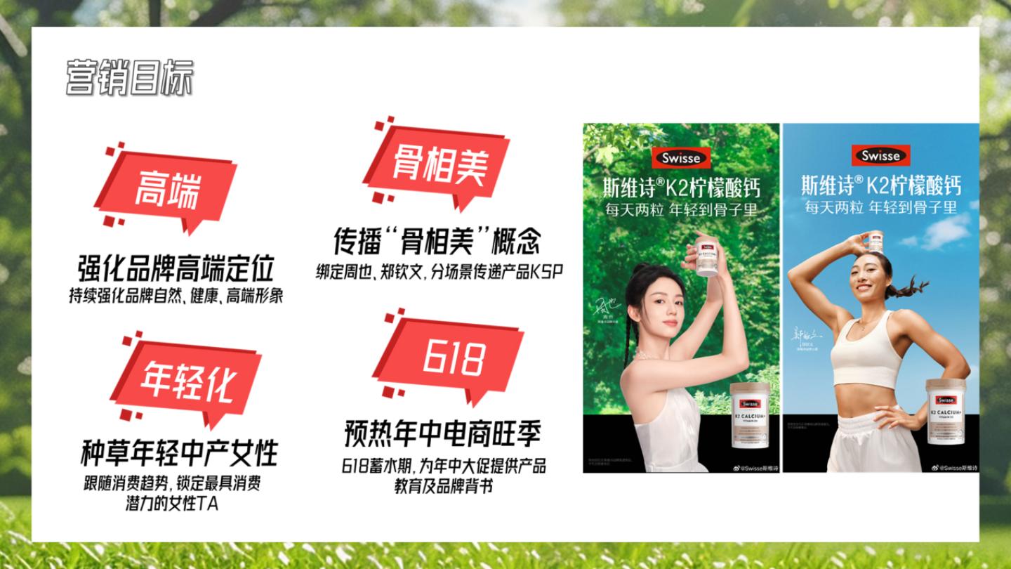 【强化高端定位】选择小米OTT提高投放质量与环境。签约品牌形象大使郑钦文和周也,利用明星形象传递Swisse高端和专业形象。