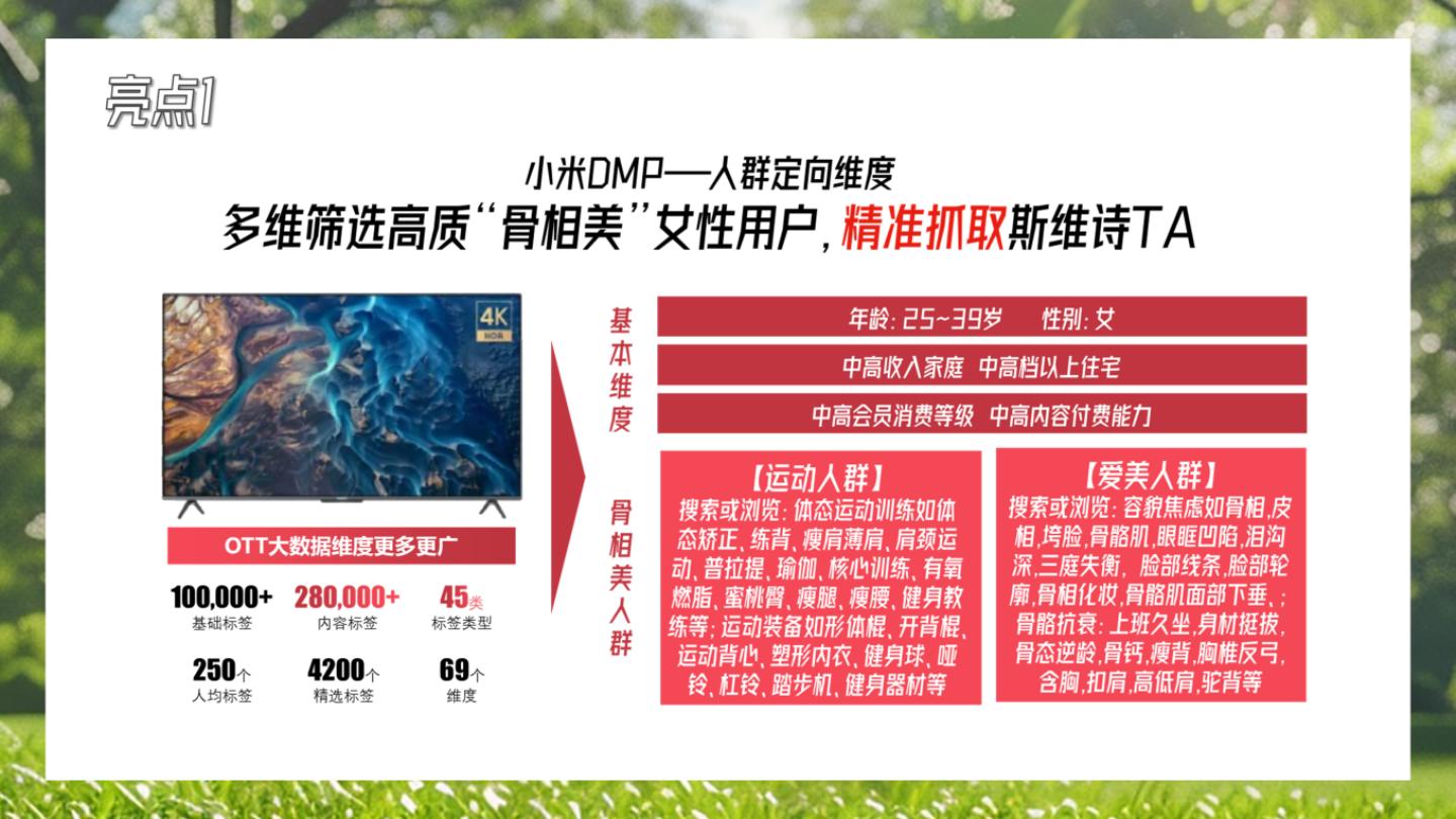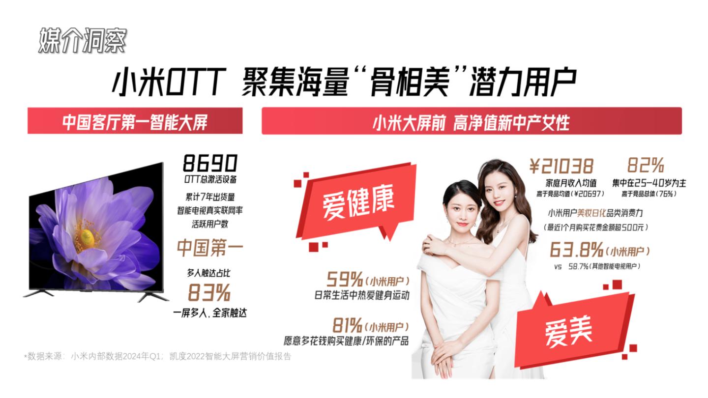 【精准渗透】小米新中产客厅大屏,针对“骨相美”运动女性TA实现高达74%的渗透率。