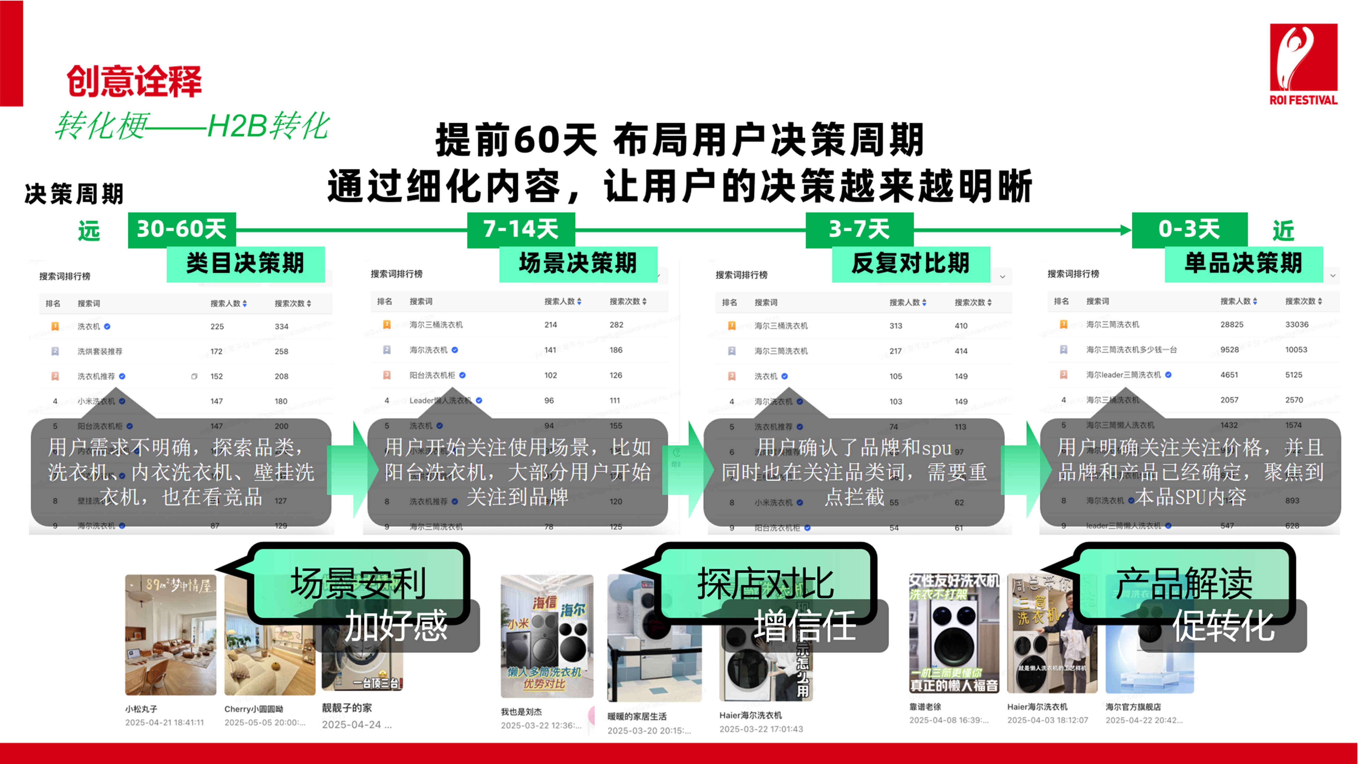 2.内容策略:提前60天布局品类内容进行拦截,通过细化内容,让用户的决策越来越明晰。