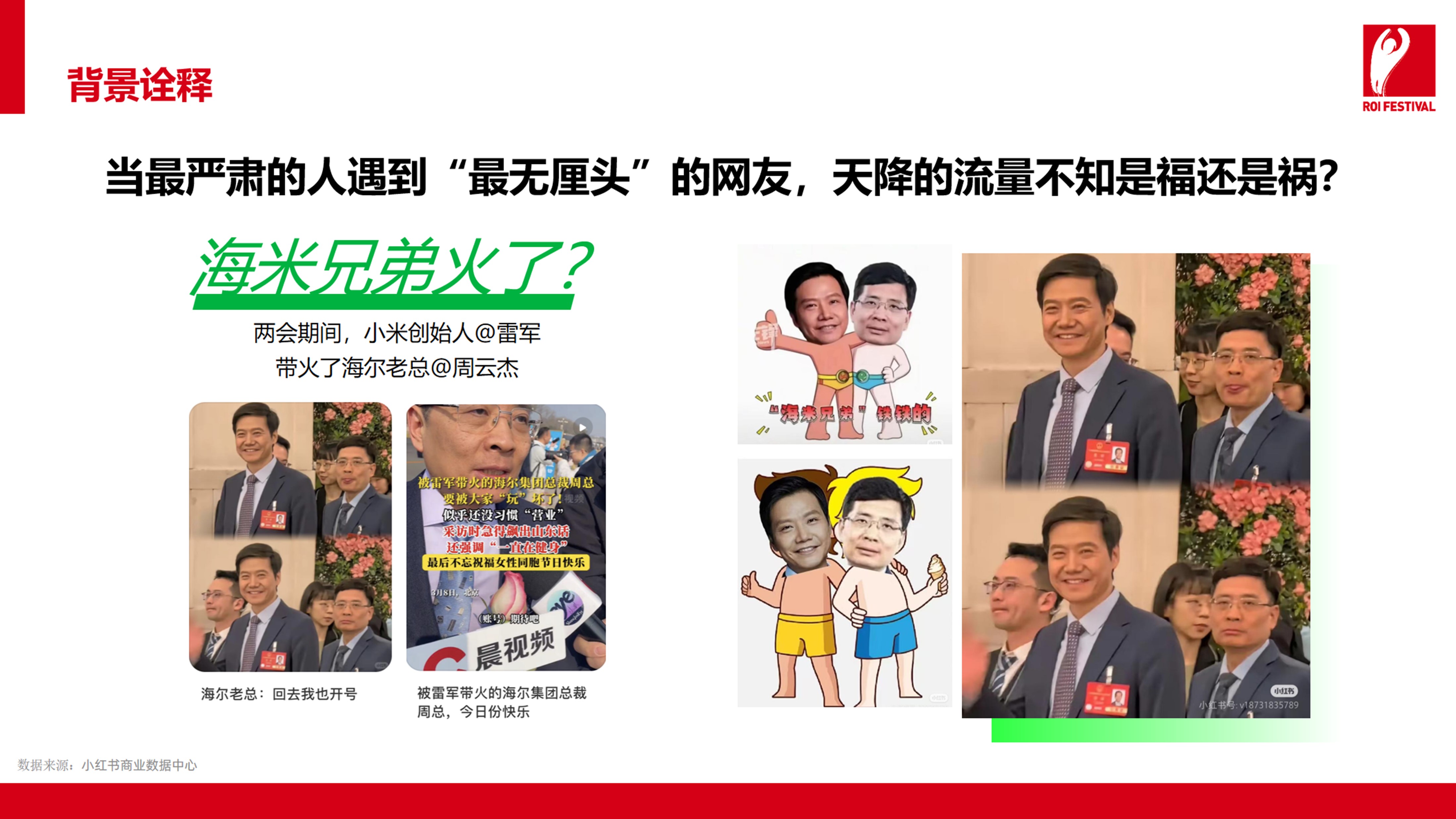 在2025年两会期间,海尔CEO周云杰坐在雷军身边时的“生无可恋”表情包意外走红。品牌方希望接住这破天的富贵,但同时给了我们新的命题:这些流量能否转化到品牌和产品上?