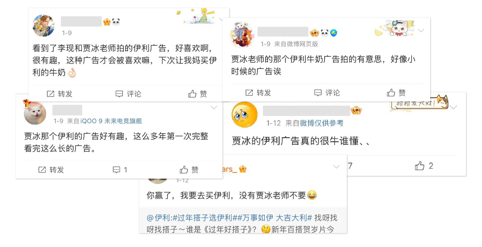 从线上到线下,将贾冰的幽默形象和伊利百搭的营销概念充分贯穿在各个环节中,打造全方位的品牌曝光和互动,最终让自发型的UGC内容加入,形成传播的长尾效应,让《过年好搭子》的热度持续发酵,也为项目留下了开放性的尾声。