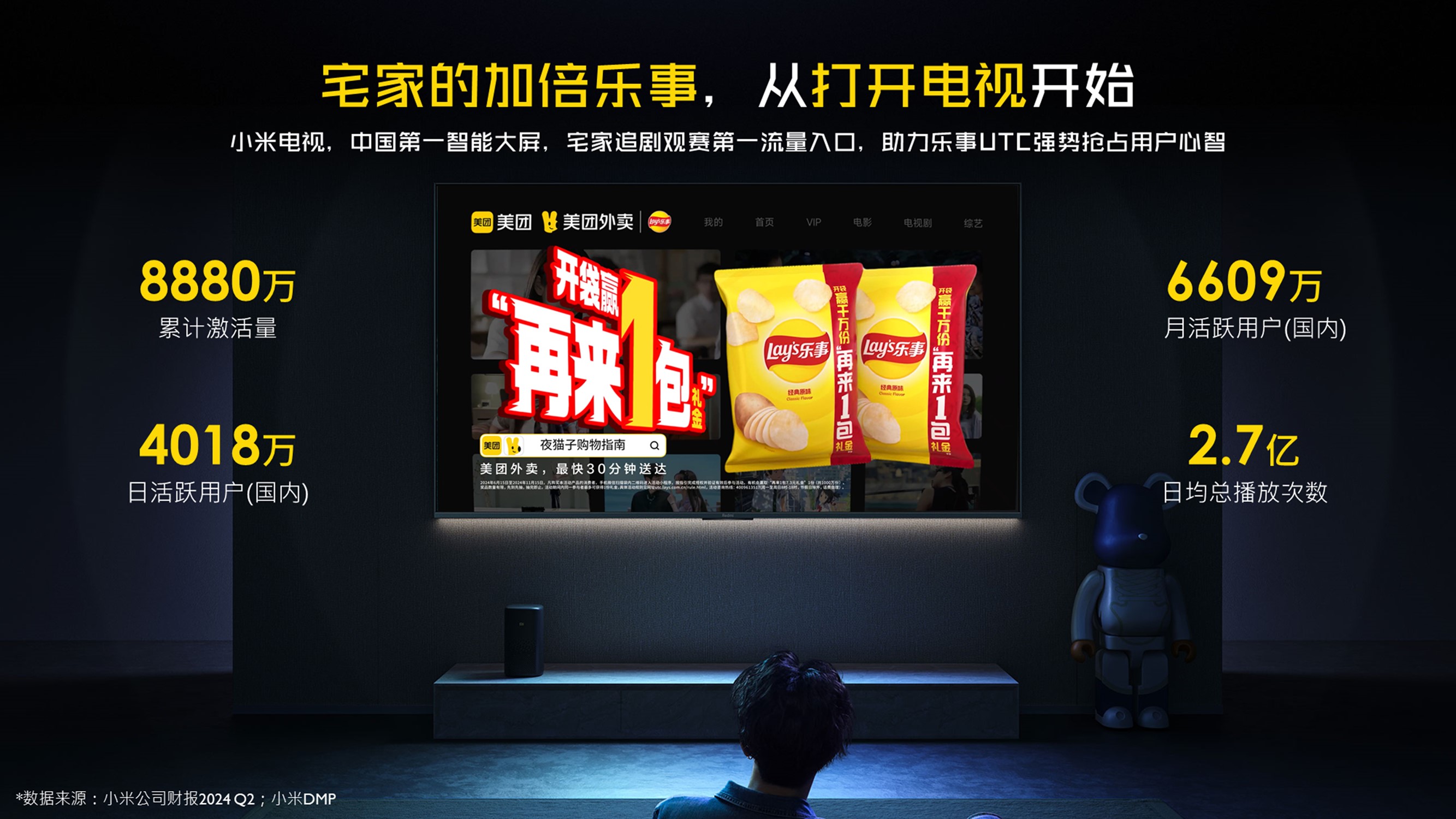 小米OTT是宅家追剧观赛的第一流量入口,且米粉粘性高,因此乐事跨界携手小米全链路深入用户宅家追剧场景进行推广宣传。