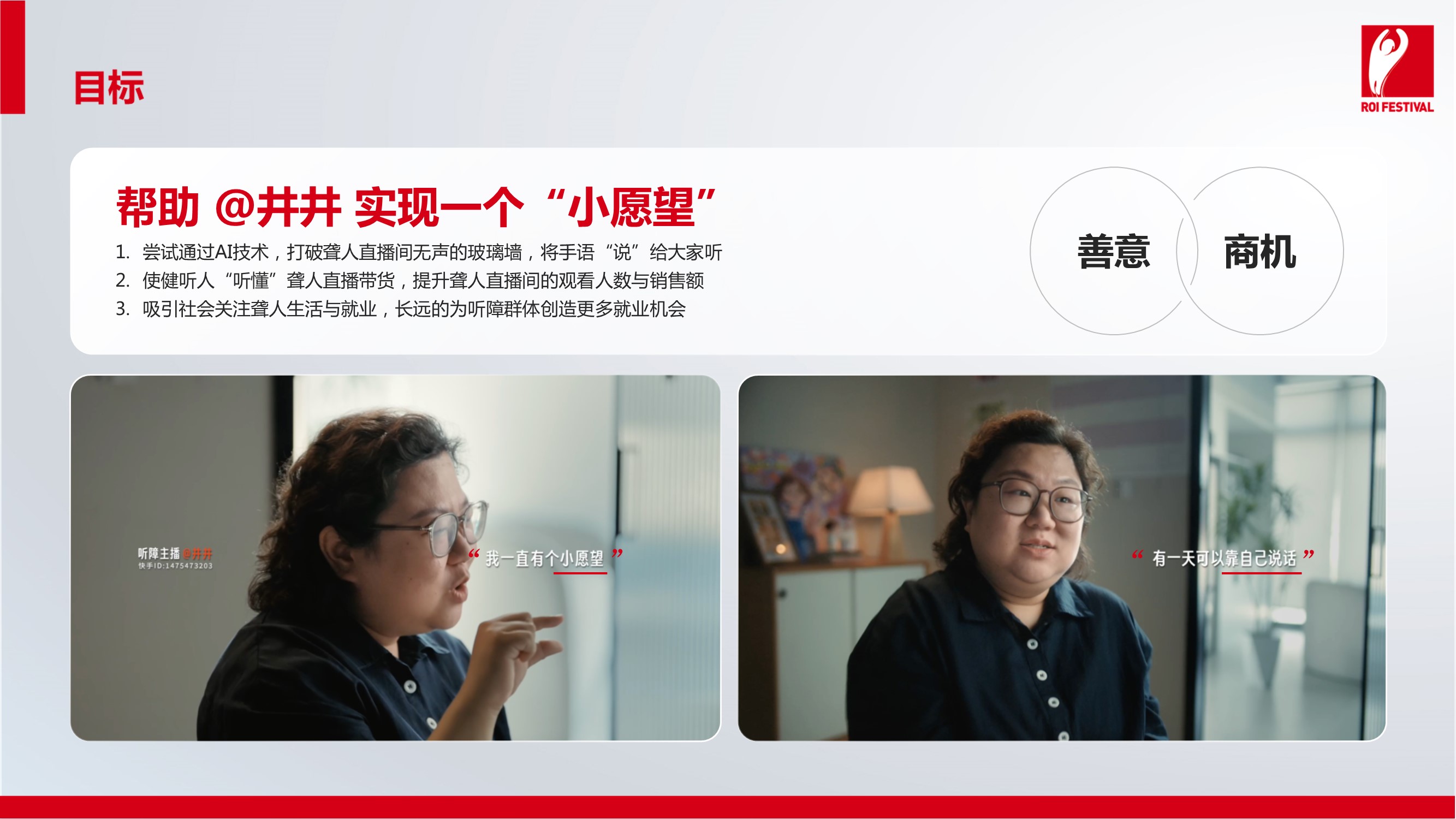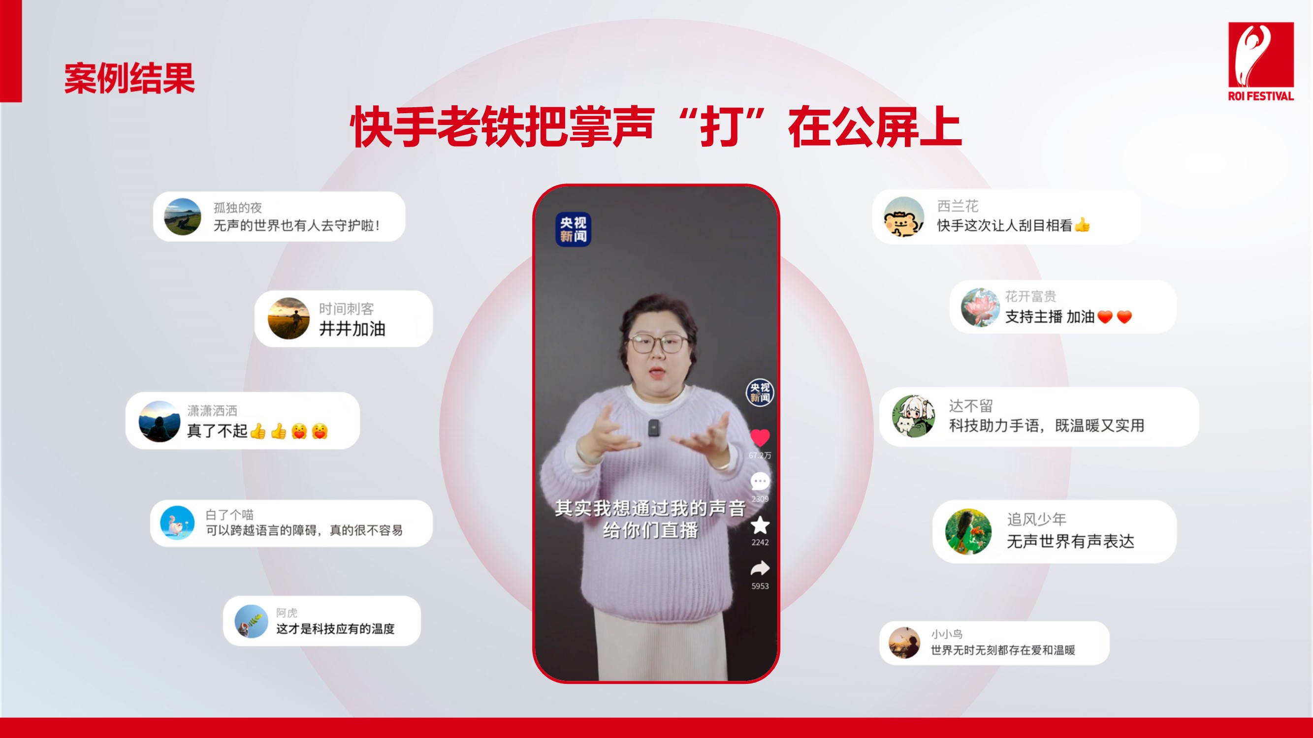 3、有内容:创意原点来自快手听障主播 @井井 的真实愿望“想通过我的声音给你们直播”。直播落地后收获了快手老铁的广泛共鸣,登上热榜;