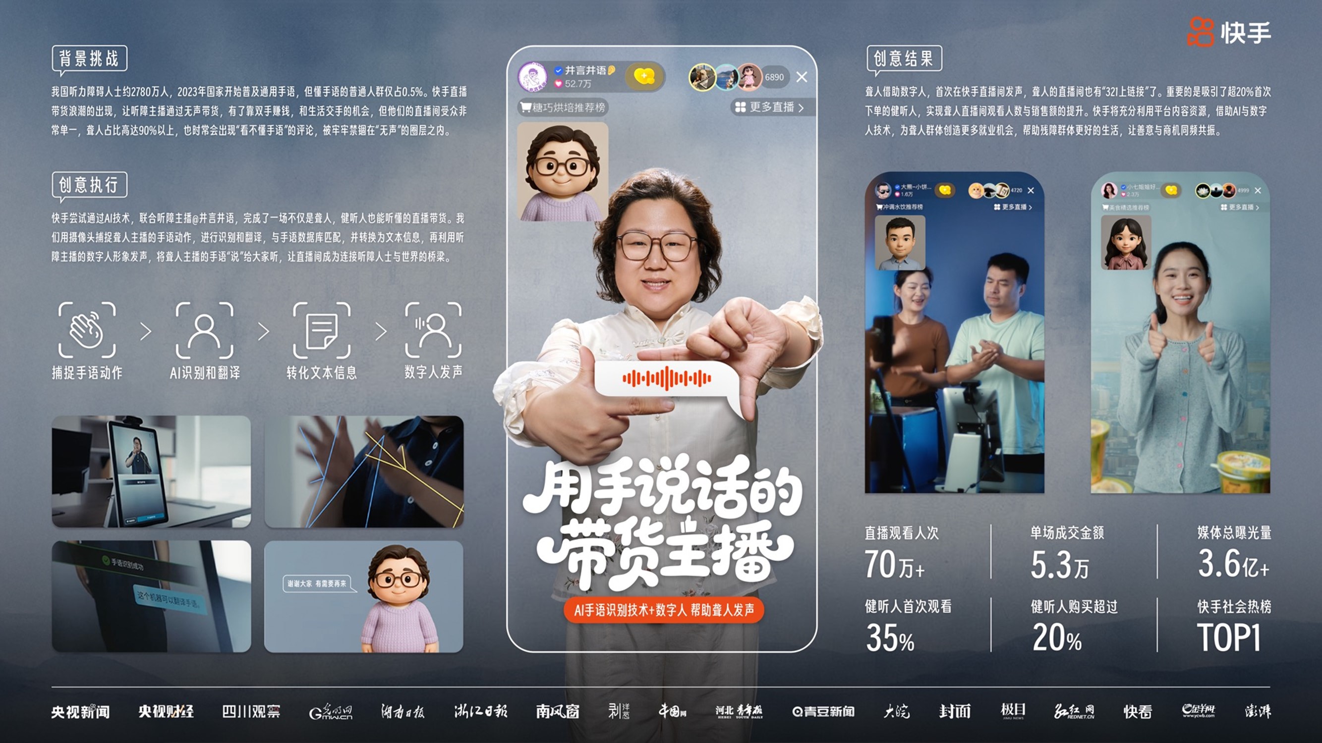 1、事件创新:听障主播首次借助“AI+数字人”在快手直播间“发声”;