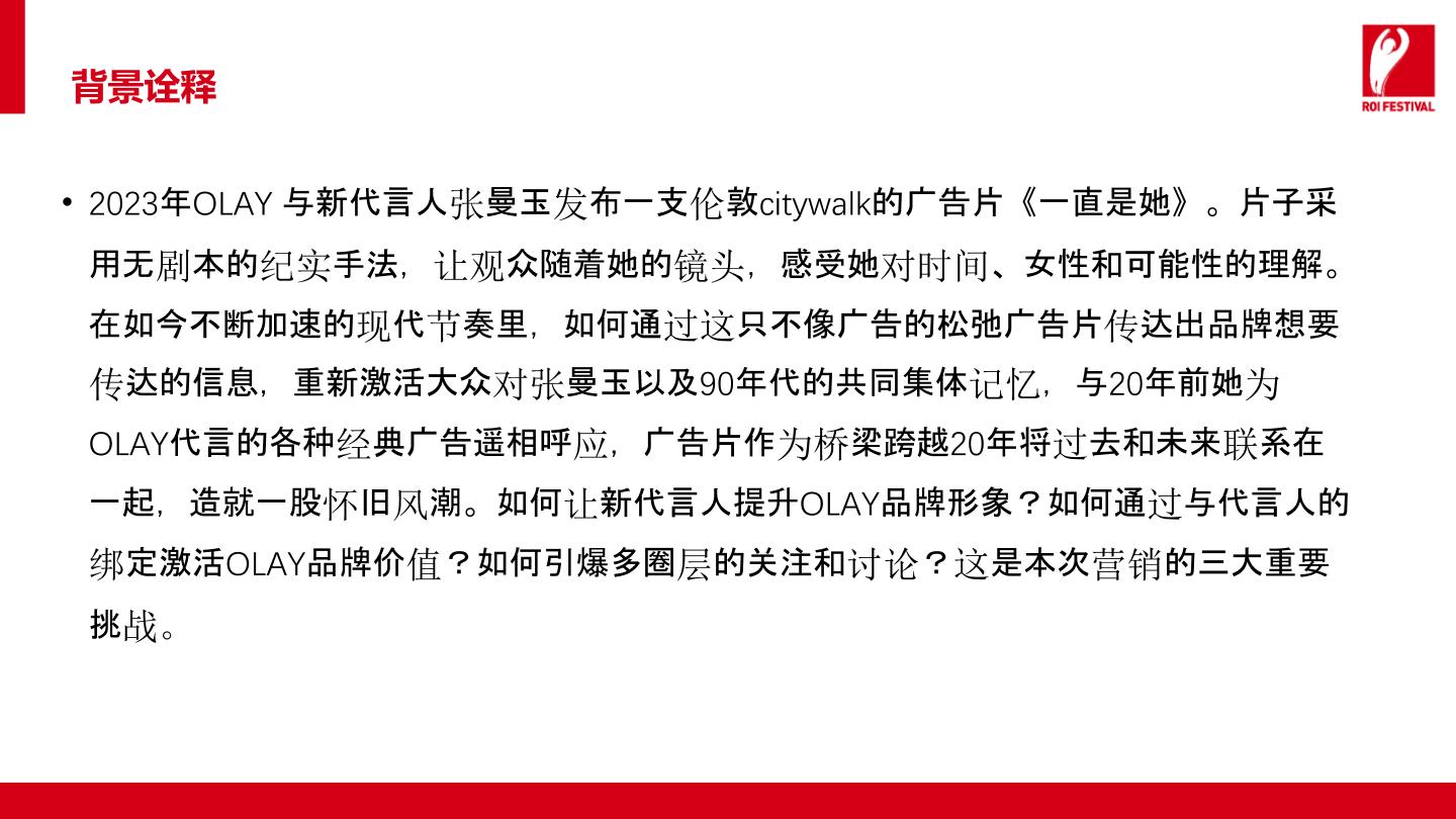 对于OLAY来说,如何将几十年如一的良好口碑让更多消费者看到?如何在喧闹的声音中被清晰的听到?这是OLAY所面临的课题。